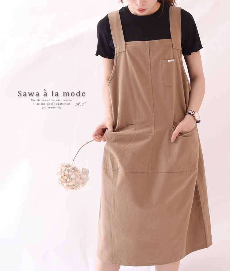 しっかりお洒落をラフに着る ワンピ—ス スカート ベージュ 綿 春夏 ノースリーブ クロップド丈 膝下丈 レディースファッション M L Mサイズ Lサイズ 9号 サワアラモード アラモード sawaalamode 可愛い服 otona kawaii かわいい服 かわいい 可愛い