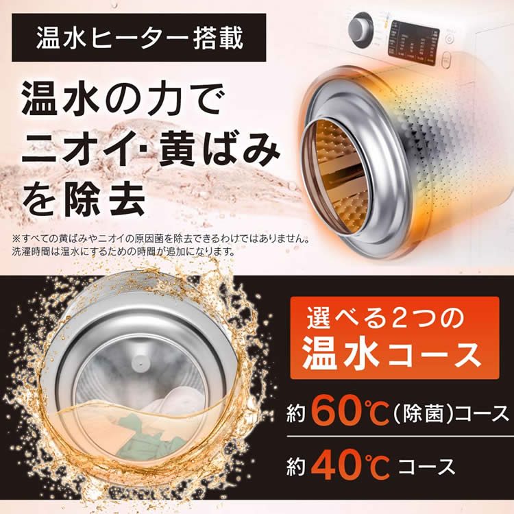 ■温水洗浄で洗濯槽もキレイに約60℃の温水で槽の汚をすっきり洗浄。