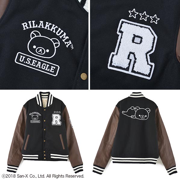 お子様に大人気! リラックマスタジャンの登場! 1枚あると何かと便利! カジュアルな着こなしにバッチリのアウターです キッズ 男児 女児 男女兼用 Rilakkuma リラックマ スタジアムジャンパー ブルゾン ジャケット アウター