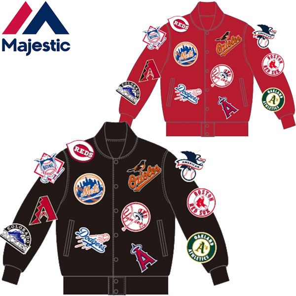 マジェスティック(Majestic)スタジャン サテンジャケット メジャーリーグ ワッペン ジャケット MLB MM23-ML-8F08 メンズ