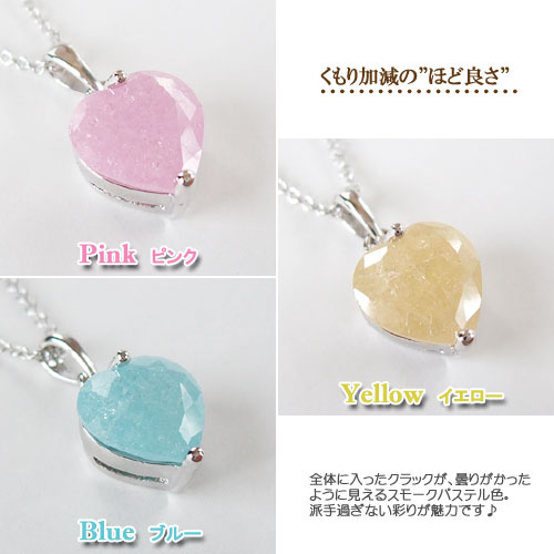 スモーキー ハートストーン ネックレス [40cm] 真鍮 ロジウム メッキ あずきチェーン アジャスター無し 40mm クラックストーン スモークストーン ハート型 ブルー イエロー ピンク ペンダント キュート カジュアル プレゼント 贈り物 レディース オールシーズン 【RCP】